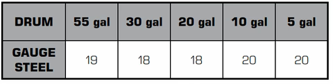 No. PowerQUAD™ vacuum generating heads produce extremely high head. Generating vacuum lift of up to 255 inches of H₂O running on 80-90 psi of compressed air, they have been known to implode. Therefore, Guardair recommends that steel drums meet the following necessary wall thickness in the table above.
